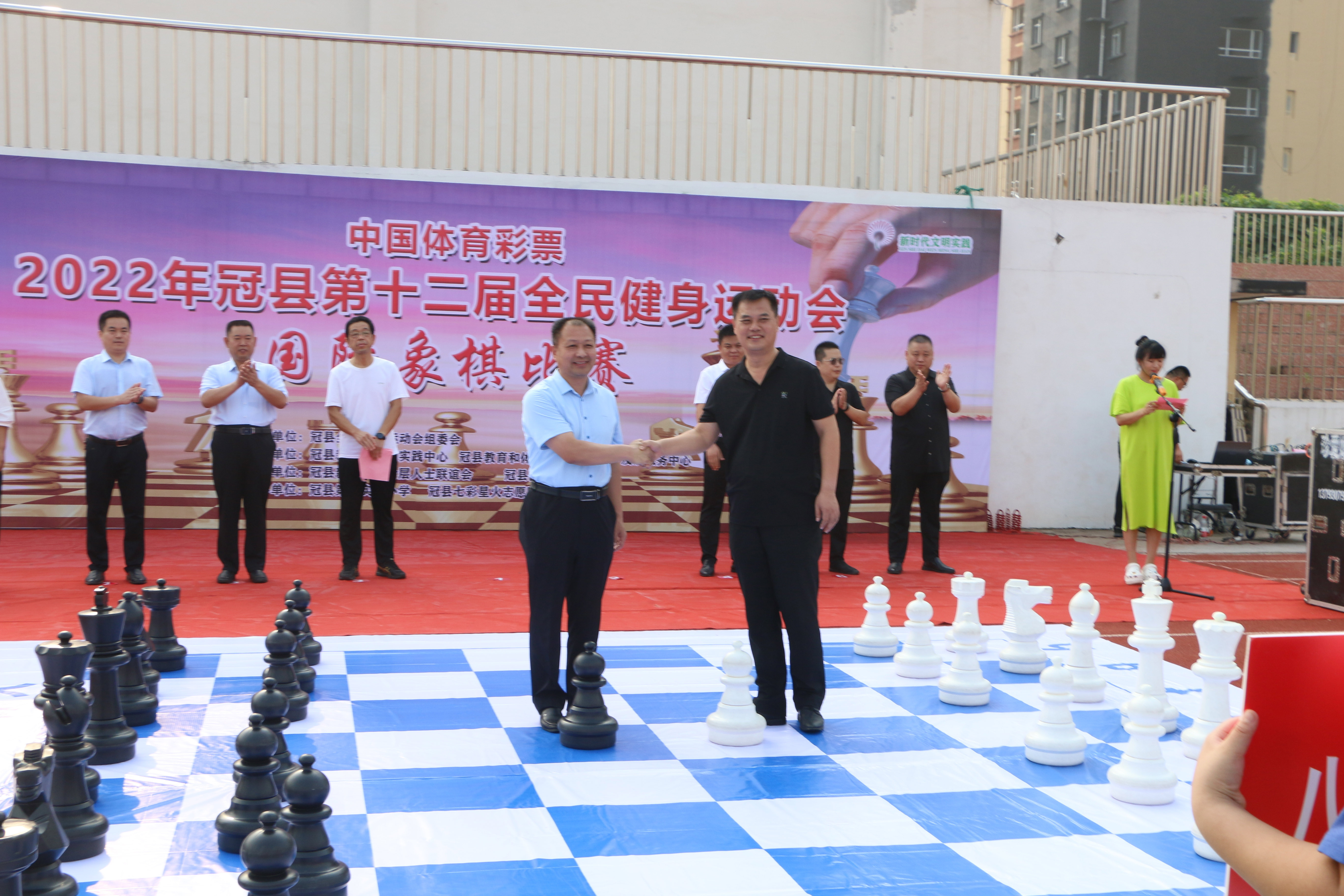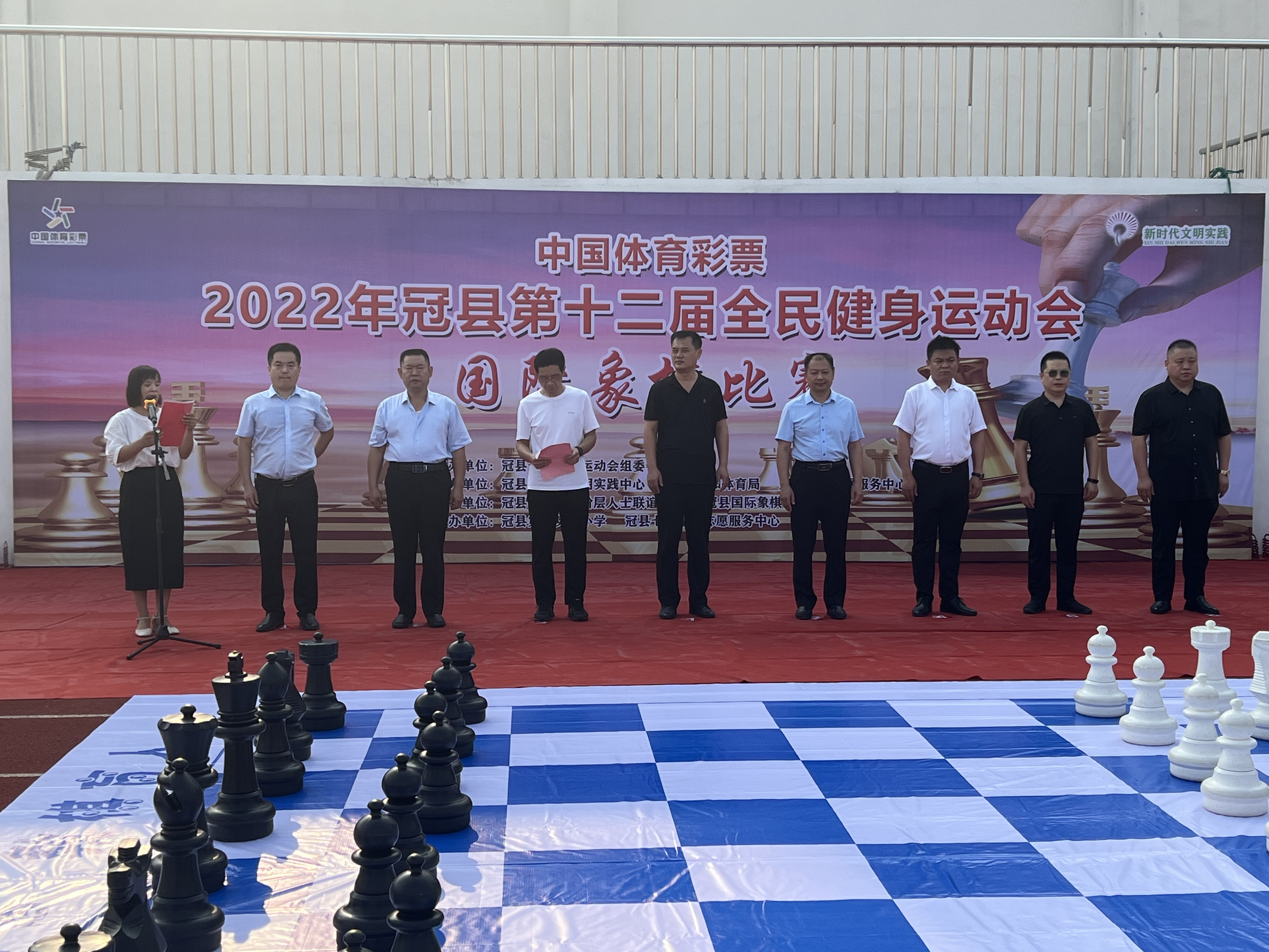 8月13日上午8时,2022年冠县第十二届全民健身运动会暨全县国际象棋比赛盛大开幕。冠县县委统战部分管日常工作副部长高增璞、冠县教育和体育局党组书记、局长王怀礼、冠县体育发展服务中心主任焦志军、冠县新的社会阶层人士联谊会会长孙冰、冠县第二实验小学校长石西军、大众网海报新闻冠县负责人高杨、冠县七彩星火志愿服务中心主任司德波、冠县国际象棋协会会长梁栋、冠县第二实验小学副校长杜艳萍参加了开幕式,开幕式由冠县体育发展服务中心群体科王艳丽科长主持。