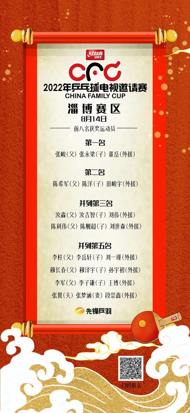 今年的CFC比赛仍然是三人团体赛,除了两名家庭成员之外,每支队伍可以邀请一名外援为自己的队伍助力。经过一天的精彩角逐,最终淄博赛区的前八名获奖队悉数诞生,特别值得一提的是,前八名有七组都为父子档+外援组合!最终昶宇体育队张峻、张永梁父子以及外援董岳以3:1战胜青州奥星队陈希军、陈洋父子和外援田峻宇,获得了2022CFC淄博赛区冠军。