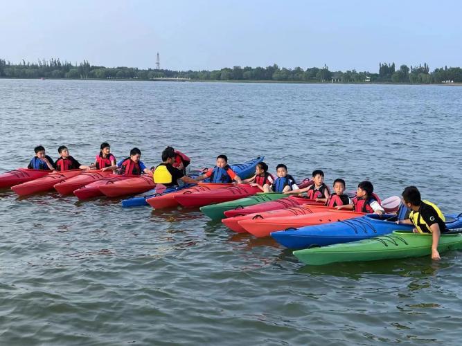 而在河北文安,除了循序渐进的足球训练课程外,依托万亩生态园区与千亩自然水域,绿发小将们也体验了丰富多彩的户外拓展课程,或是成为小小勇士,尝试皮划艇、浆板等水上运动;或是团结协作,在极限飞盘、真人CS中增强团队合作意识。夏令营结营时,大家纷纷表示收获颇丰,留下了快乐、难忘的回忆。