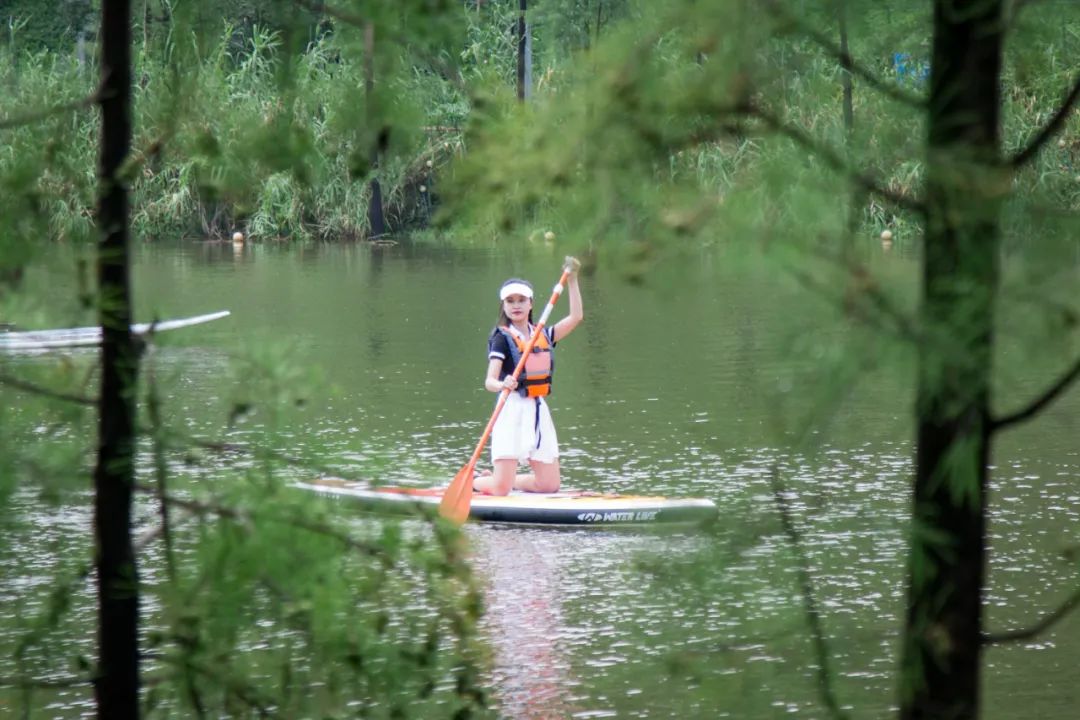 温馨提示:参与桨板体验活动时,请穿好救生衣,在专业人士的指导下进行。