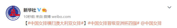 至此,中国女排以总比分3-0横扫澳大利亚队,顺利晋级四强。