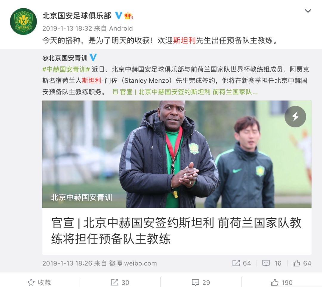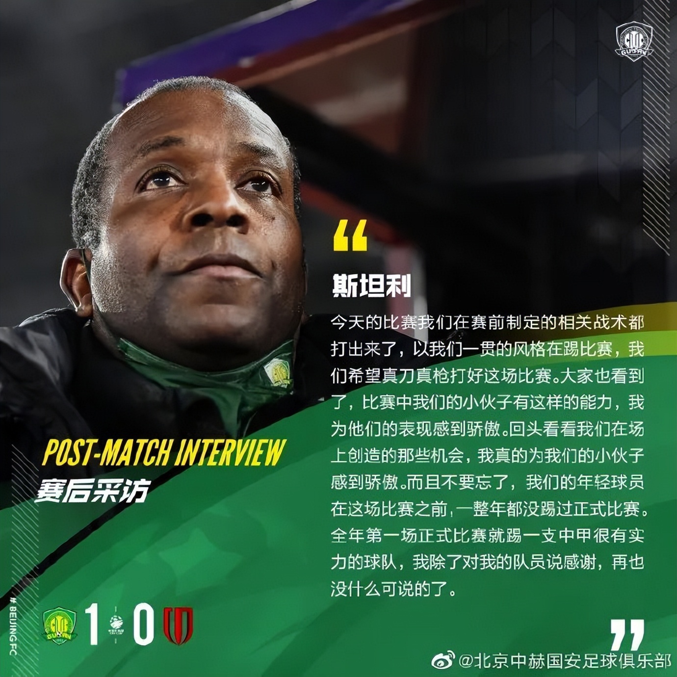 由此看来,斯坦利是对国安有一定了解的,应该能够很快熟悉球队,并将自己的战术打法灌输到球队中。
