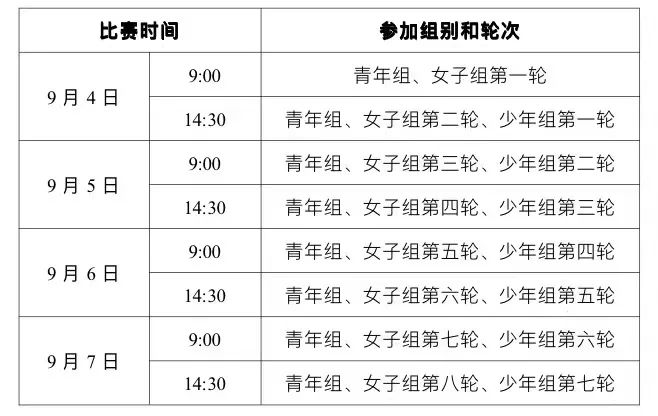 五、比赛期间不得无故弃权,违者取消下一年度国家队选拔赛报名资格。