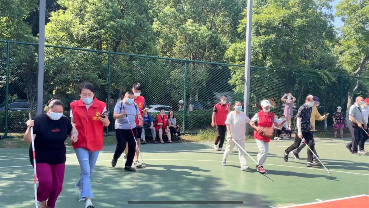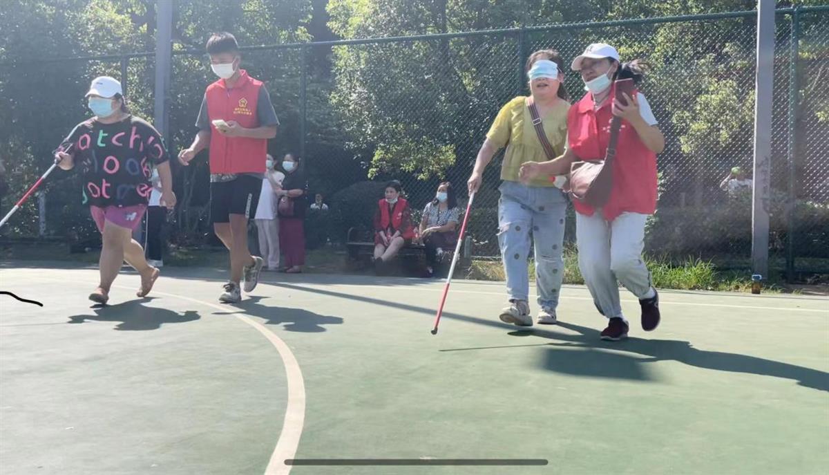 湖北日报客户端讯(通讯员刘珊 全媒体见习记者郭伟桐)9月4日上午,襄阳举行第12届残疾人健身周“喜迎二十大·自强我争先”盲人定向行走比赛,15名视力残疾人在亲友及志愿者的陪护下参加活动。