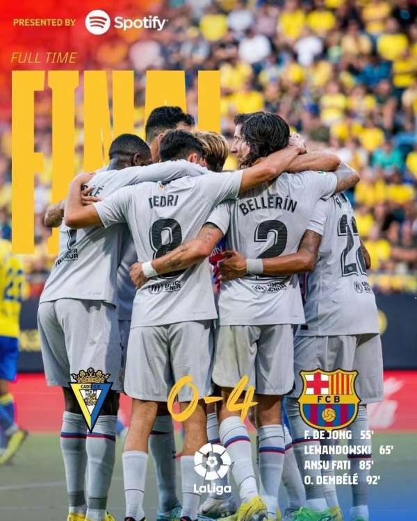 重新开球之后的比赛,由于大局已定,加迪斯球员显得无心恋战,莱万助攻法蒂推射空门得手,登贝莱有远射再下一城,最终巴塞罗那客场4-0轻松带走了3分,豪取四连胜,而加迪斯遭遇五连败,一球未进,深陷保级泥潭。