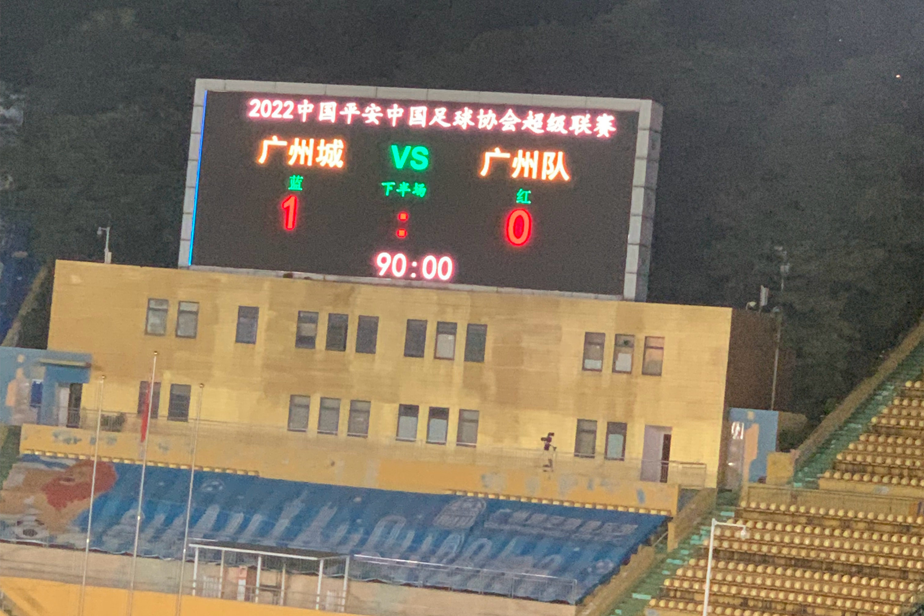易边再战,广州城攻势不减。第51分钟,广州城连续在禁区内完成两次射门,但都被状态神勇的张键智奋力扑出。第59分钟,场上比分终于被改写。李永佳接李提香传球后向右横向带球摆脱防守,随后起右脚打出漂亮的半转身射门,皮球直挂球门右下角。广州城1-0领先。