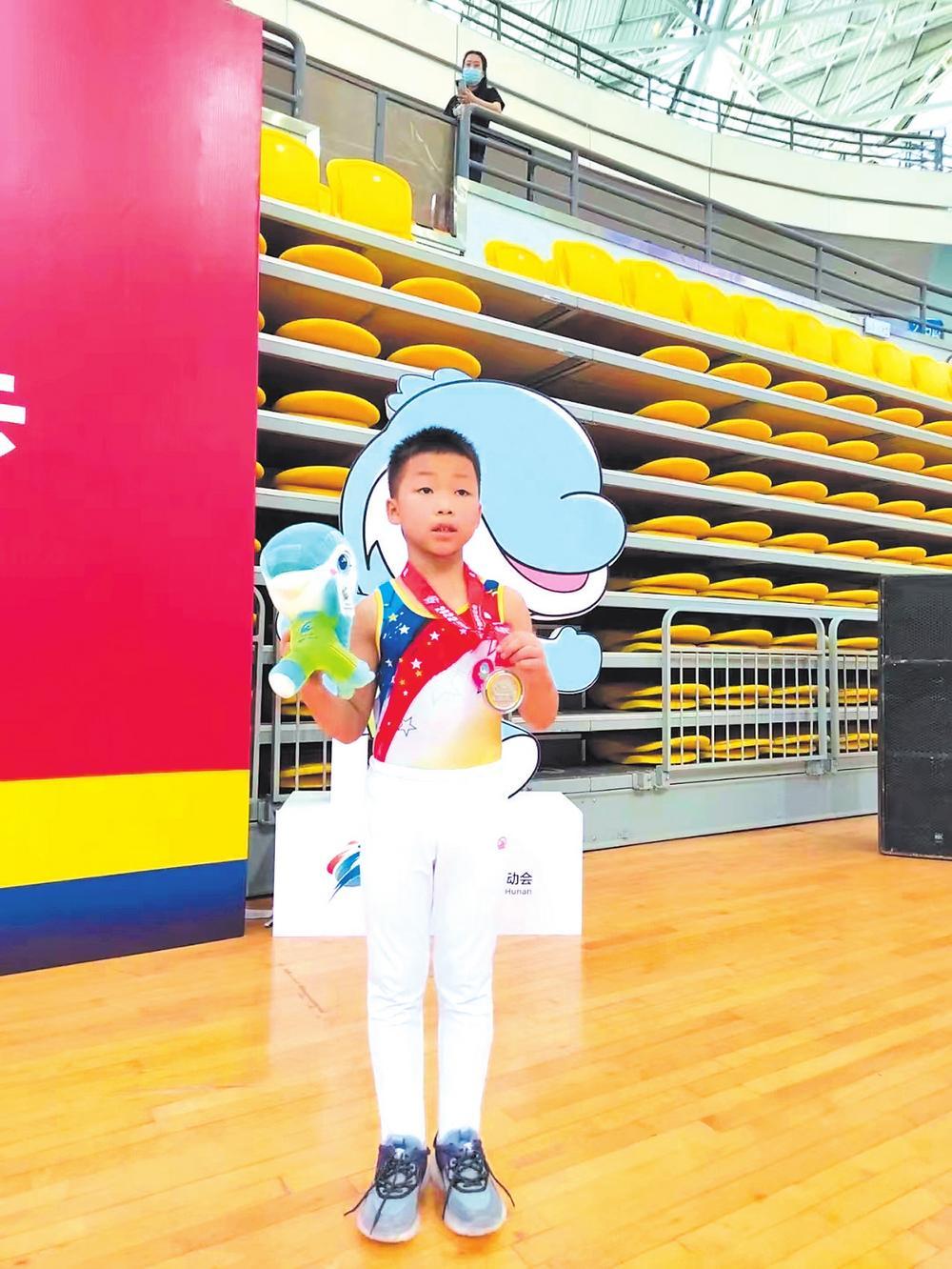 岳阳晚报全媒体讯(记者 黄诚成) 9月12日,在湖南省第十四届运动会(青少年组)体操比赛男子U9组决赛中,岳阳8岁小将杨洋在赛场上以沉着冷静的比赛状态,最终以总分24.734分的成绩收获男子U9组自由体操+鞍马项目银牌。