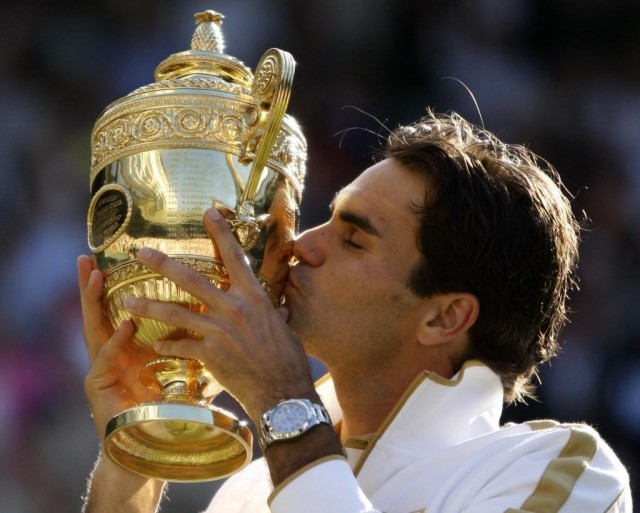 这是2009年温网男单决赛中,费德勒以3:2战胜美国选手罗迪克,第六次夺得温网冠军。新华社记者王丽莉 摄