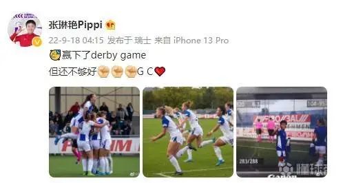 可以说,张琳艳融入球队的速度之快实在是超越人们的想象!就在一周前,在瑞士杯迎来俱乐部首秀的张琳艳就“大杀四方”,在首轮面对图西斯卡齐斯女足中,张琳艳就完成1球4助攻独造5球帮助球队10-0大胜对手。而连场破门之下,张琳艳仍旧保持谦逊,赛后她在个人社交平台上发文表示:“赢下了德比战,但还不够好”。