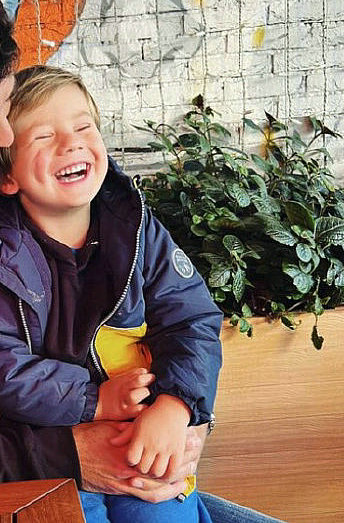 最后来猜一猜认一认。下面这张图片是一位球员的儿子坐在爸爸腿上开心地笑着。不作提示,您能猜出他爸爸是谁吗?