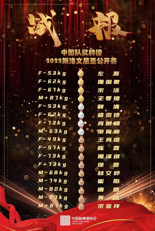 2022年5月,在世界跆拳道奥地利公开赛中,中国队豪取6枚金牌。其中,在女子67公斤级比赛中,四川选手宋洁拿到了该项目的冠军。