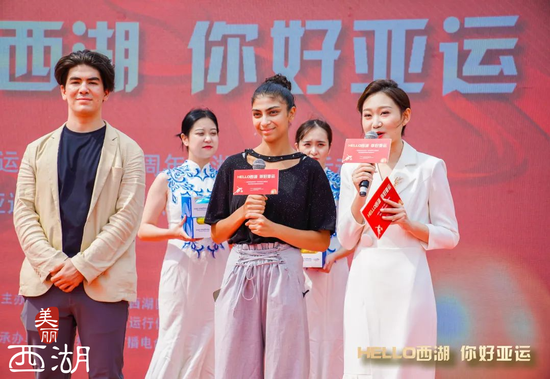 中英文朗诵节目《人生如此精彩》、主持人亚运分享《HELLO 西湖 你好亚运》精彩上演,来自浙江大学、杭州文广集团的主持人用语言、文字的魅力传播亚运知识,打造亚运新“破圈”渠道,用接地气的语言“立”好西湖区形象。