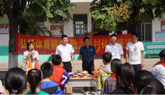 在大岗村唐学元希望小学,帮扶工作队开展了“大手拉小手,阳光体育运动进校园”活动,向唐学院希望小学捐赠了篮球、足球、跳绳等总金额近万元的体育器材。