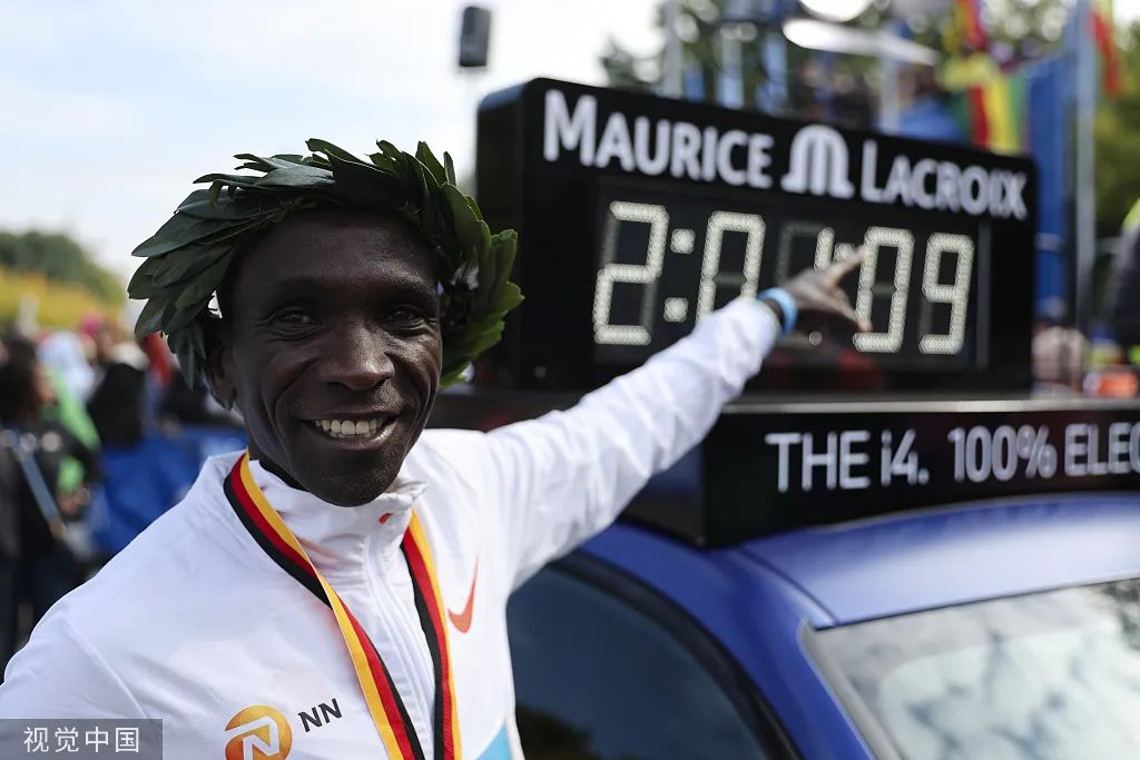 2022年柏林马拉松赛,肯尼亚名将基普乔格以2小时01分09秒强势夺冠。(图源:视觉中国)尽管未能“破二”,基普乔格依然改写人类马拉松历史。25日结束的2022年柏林马拉松赛上,男子马拉松世界纪录保持者、肯尼亚名将基普乔格以2小时01分09秒强势夺冠,打破由他自己保持的2小时01分39秒的男子马拉松世界纪录。中国选手方面,何杰跑出2小时11分18秒以第17名完赛,碾者阿提以2小时14分47秒获得第29名,仁青东知布2小时15分17秒获得第31名。