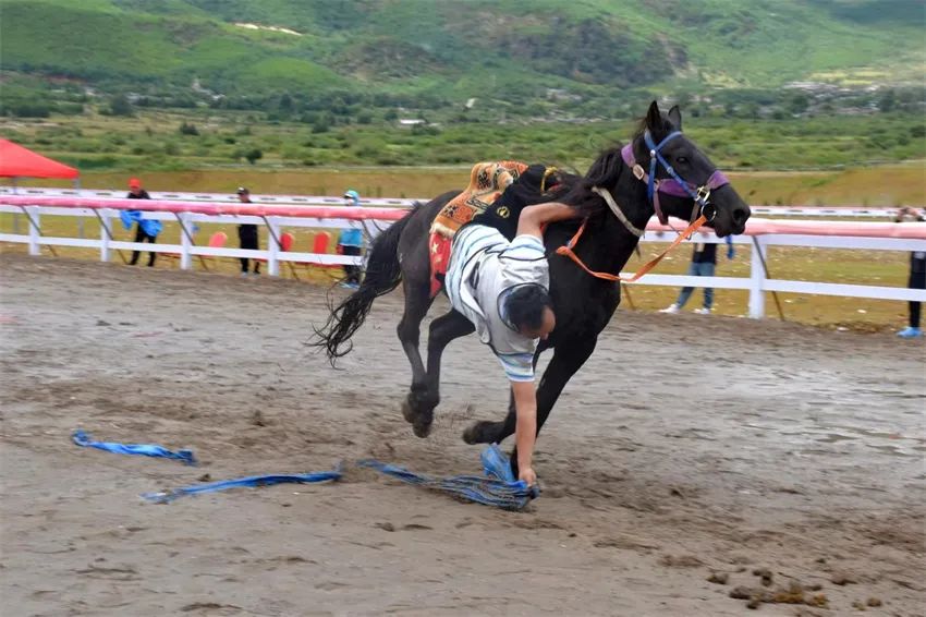 在甲组跑马拾哈达决赛中,来自丽江代表队的恩主获得一等奖;乙组跑马拾哈达决赛中,丽江代表队的邓主次里获得一等奖。至此,整个民族马术比赛圆满结束。