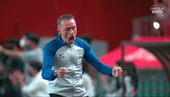 韩国队主帅保罗-本托也是极为兴奋,连续挥拳怒吼庆祝!