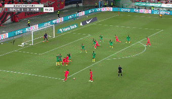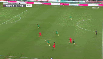 孙兴慜回撤到中场组织,并送出精准长传。黄喜灿左路传球,禁区左侧的金珍洙似传似射,大力横扫门前,喀麦隆门将奋力将球扑出,孙兴慜头球冲顶破门,韩国队1-0领先!