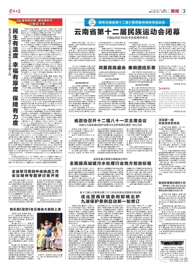 9月26日,云南省第十二届少数民族传统体育运动会在丽江市圆满落幕。这场体育盛会是我省铸牢中华民族共同体意识的生动实践,是促进我省各民族同胞广泛交往、全面交流、深度交融的重要平台,对促进我省文化繁荣、经济发展、民族团结、社会和谐具有广泛而深远的意义。