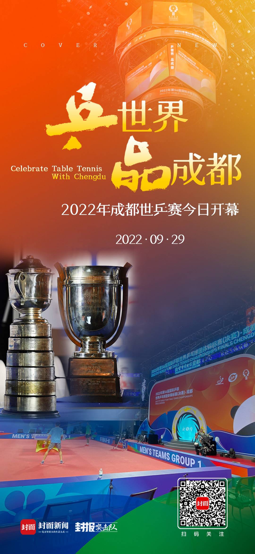 9月29日下午15时,2022年第56届国际乒联世界乒乓球团体锦标赛(决赛)·成都(简称成都世乒赛团体赛)开幕式将在高新体育中心举行。象征着世乒赛团体赛最高荣誉的斯韦思林杯和考比伦杯,也将在开幕式上面向公众隆重亮相,提前点燃赛场。