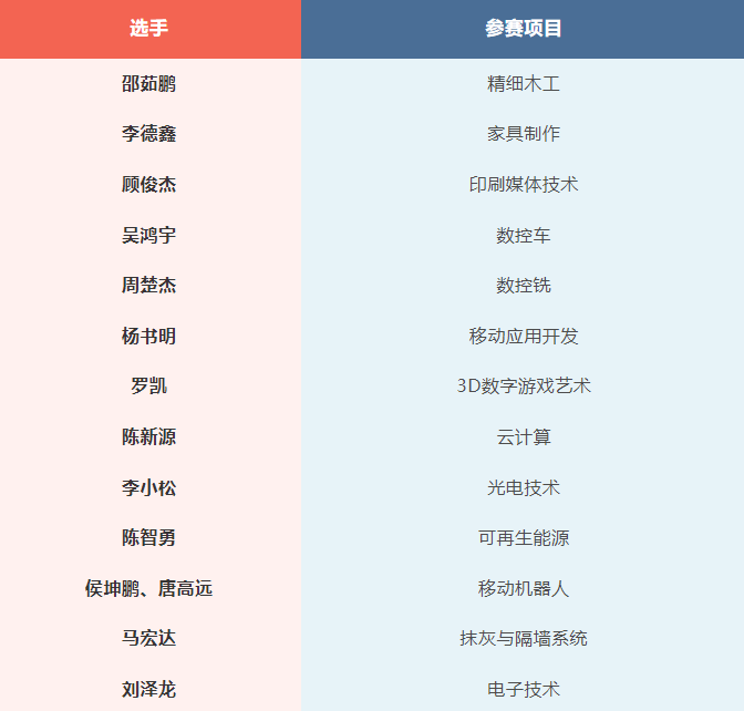 选手全部来自技工院校等职业院校