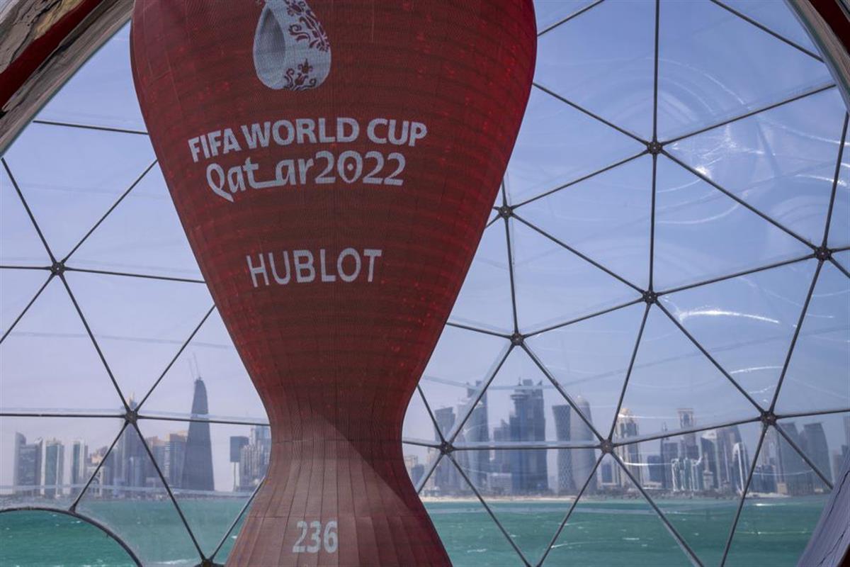 卡塔尔首都多哈的世界杯倒计时装置(图片来源:美联社)