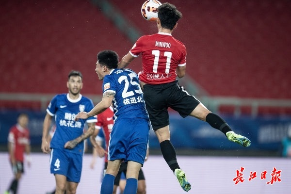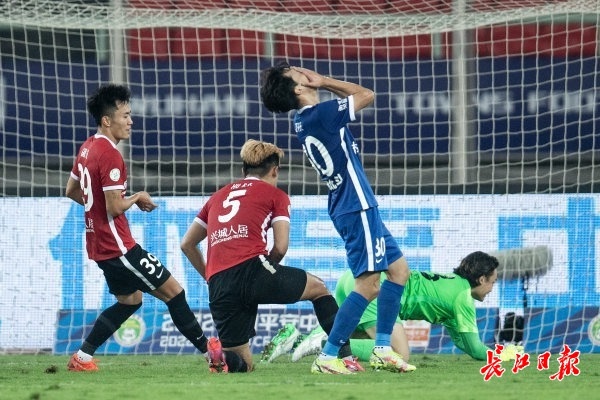 第30分钟,武汉三镇获得禁区前任意球机会,马尔康主罚一脚抽射偏出门楣。不久后,谢鹏飞接马尔康横传获得射门良机,但他的一脚抽射同样擦门而出。