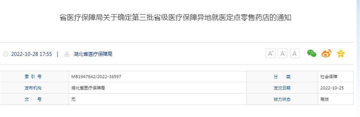 湖北省医疗保障局关于确定第三批省级医疗保障异地就医定点零售药店的通知