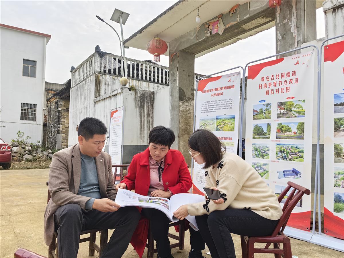 “基开白水村庄,桂下修文偃武,共庆科第蝉联,隐于植桂山房……”在黄安吉村湾规划图上,村民都找得到自家位置,看得到改造前后变化,打心眼里是服气的,高兴的和支持的,还成功吸引部分年轻人开始回乡开农宿,做电商,搞文创,卖农特产品。