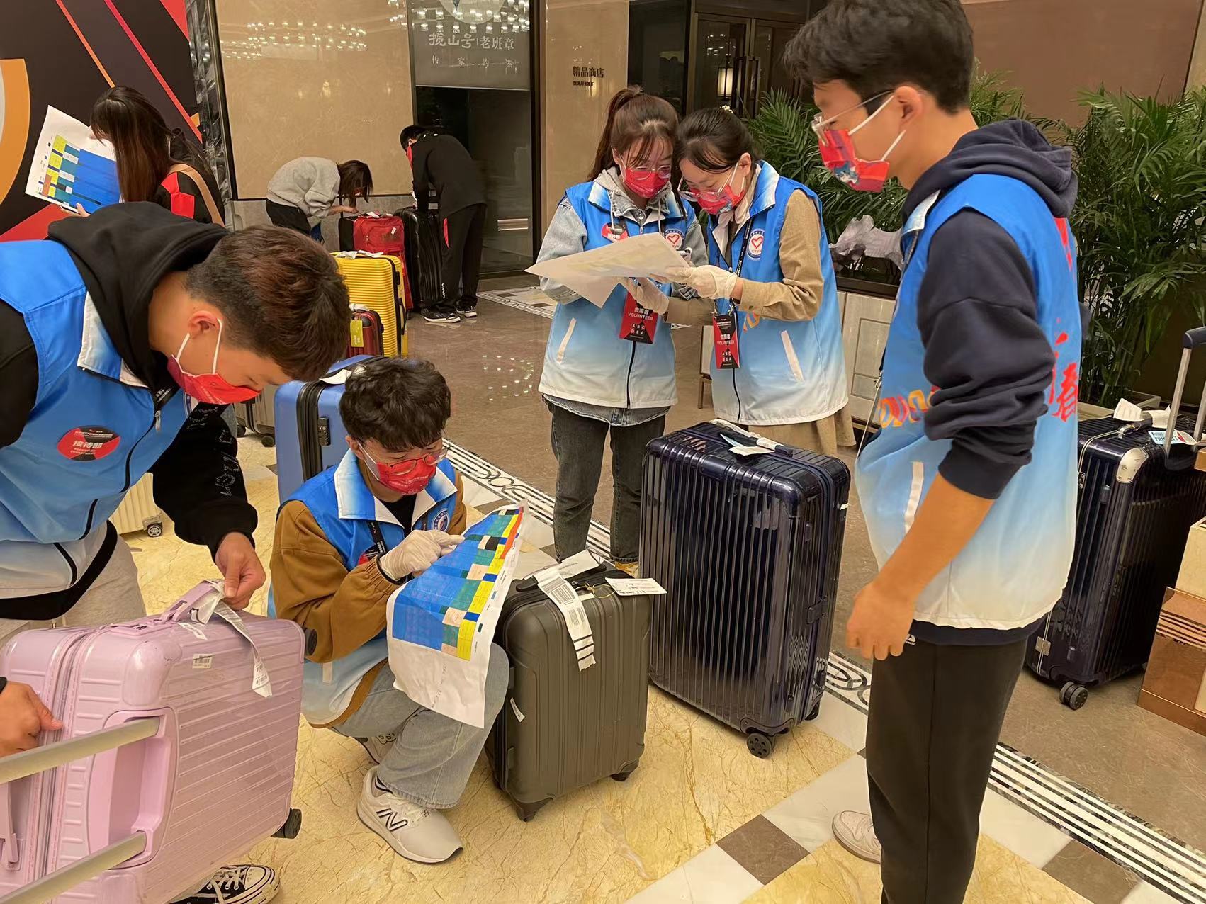 体育学院2022级本科生潘子昂是本次赛事接待部的志愿者,“我的工作任务是在酒店大堂引导参赛运动员办理入住并协助他们运送行李,所有运动员的姓名和相貌都要准确记住,不能出错。”潘子昂说,“初次参加大型国际比赛的志愿服务工作难免有些紧张,但运动员们亲切友好,我也很快就进入了工作状态,每天我都会以自己最好的精神面貌去迎接来自世界各地的选手。”