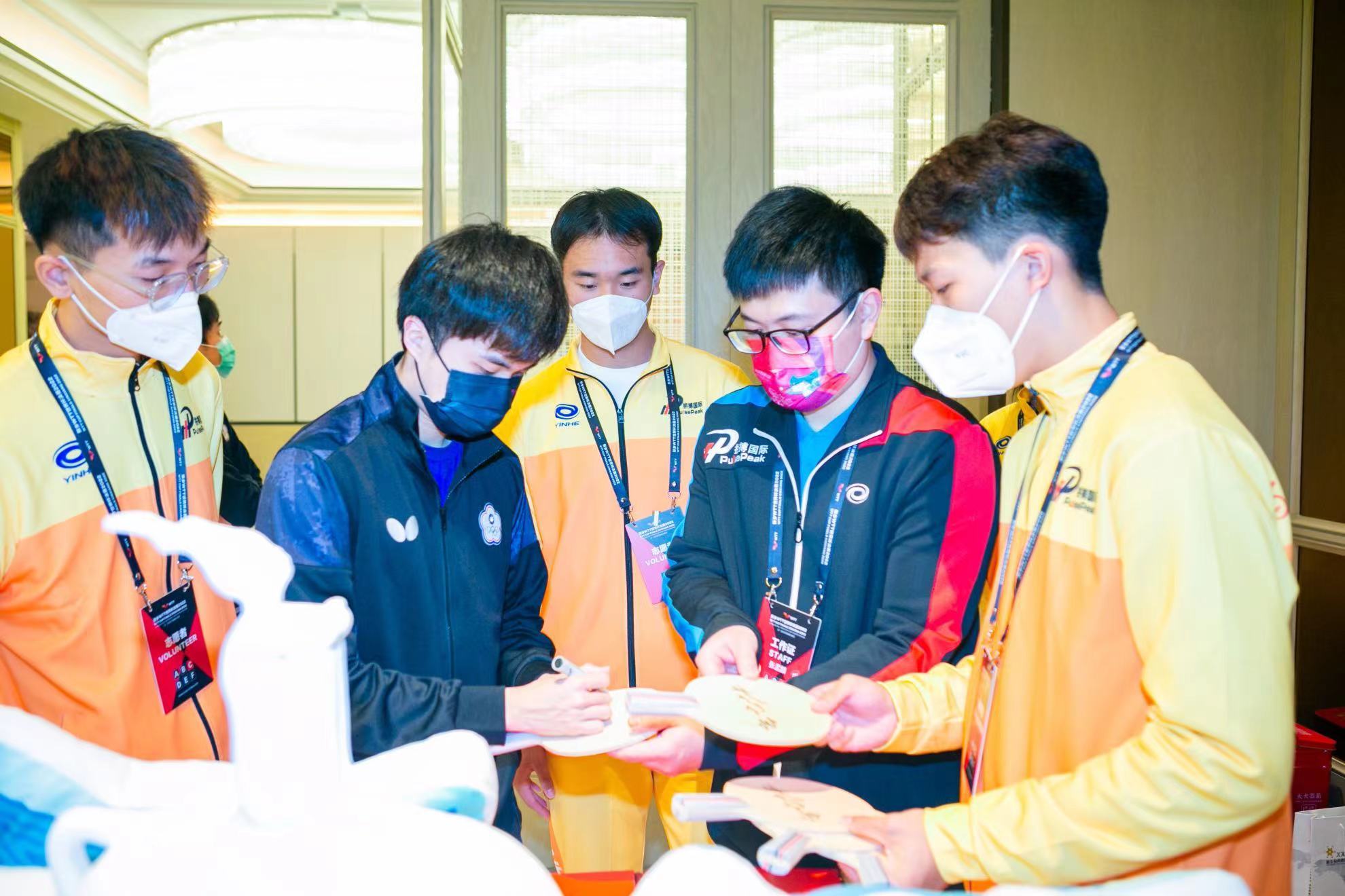 因为工作需要,潘子昂驻守酒店,不能到比赛现场。“没能在现场感受大赛的气氛也不遗憾,工作是第一位的。我们责任重大,细心做好后勤保障,球员们才能安心比赛。”潘子昂说,“我也收获了自己的礼物,马龙、王楚钦都给我的球拍签了名。”