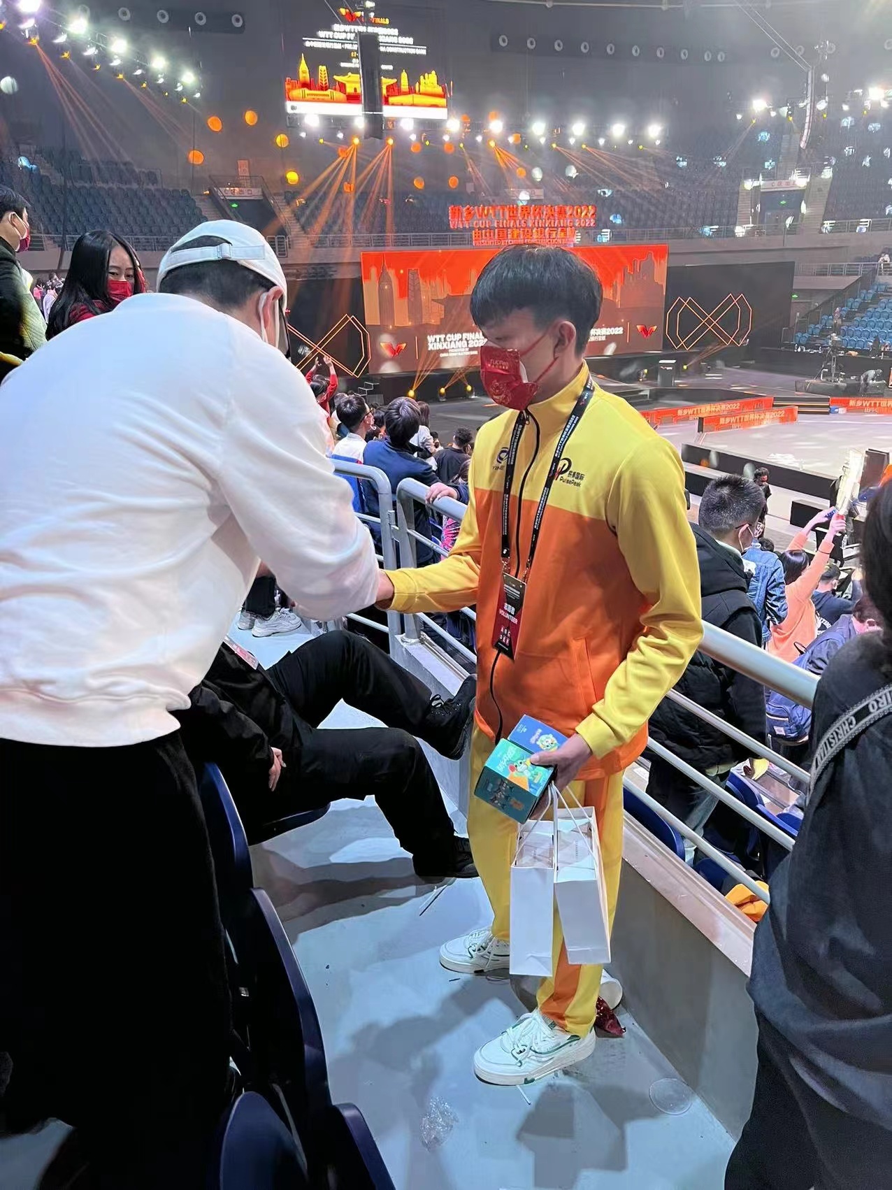 “请佩戴好官方指定红色口罩,接受检票,有序进场入座。”10月27日上午,在平原(建业)体育中心“新乡WTT世界杯决赛2022”赛区内场,河南师范大学体育学院研究生熊亚玲作为赛会志愿者,正在维持现场秩序,引导观众有序入座。
