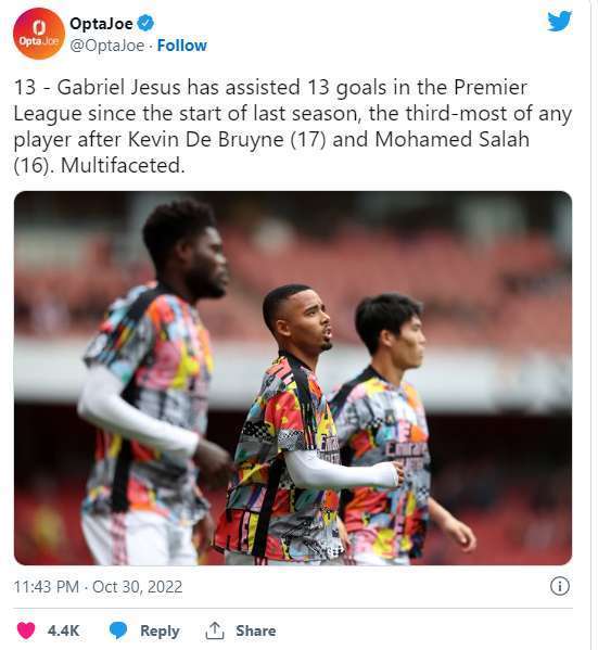 作为一个前锋来说,热苏斯的创造能力在同位置球员中是独一档的存在。