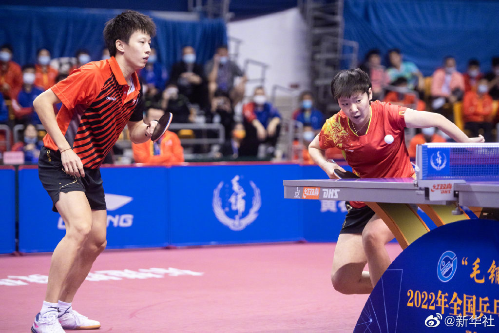9日晚,在湖北黄石举行的全国乒乓球锦标赛混双决赛中,林高远/王曼昱4比2击败王楚钦/孙颖莎,摘得混双桂冠。