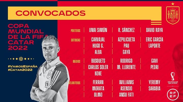 西班牙队公布了卡塔尔世界杯大名单,与2018年世界杯阵容相比,只剩下6名球员继续代表西班牙队出征卡塔尔。