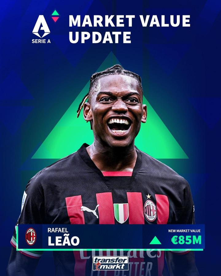 11月11日,德国转会市场网站更新了意甲球员身价,米兰前锋莱奥身价暴涨1500万欧,以8500万欧成为意甲德转身价最高的球员。