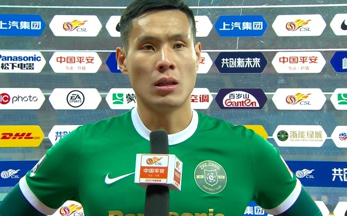 北京时间12月15日,浙江队1-1战平成都蓉城,赛后,打进一球的梁诺恒接受了瞬采。