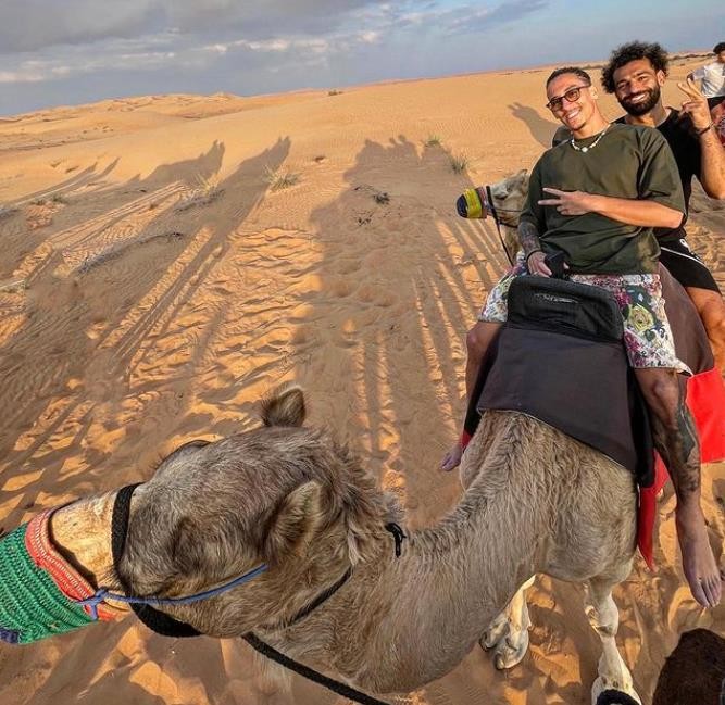 近日,利物浦的球员们休息了一段时间,他们前往迪拜的沙漠中骑骆驼。