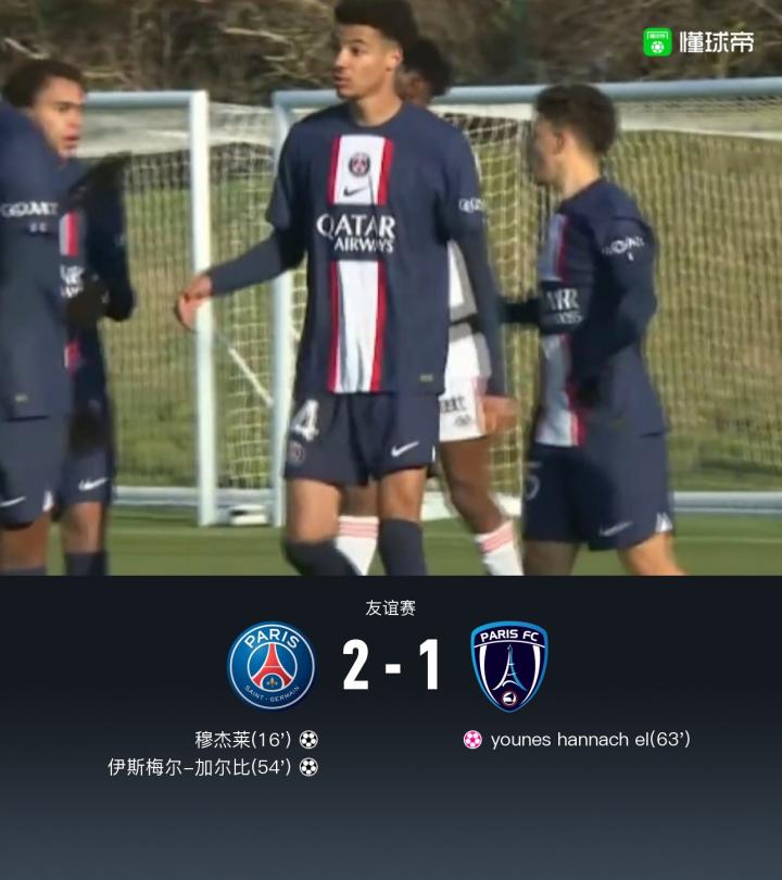 北京时间12月16日18:30,巴黎圣日耳曼友谊赛中对阵巴黎FC,本场比赛上下半场各30分钟。上半场埃基蒂克右路射门击中横梁弹出,之后穆杰莱禁区内低射破门。下半场埃基蒂克进球因越位被吹无效,之后加尔比禁区内兜射破门再下一城,比赛最后时刻汉纳希自摆乌龙。全场结束,巴黎圣日耳曼2-1巴黎FC。