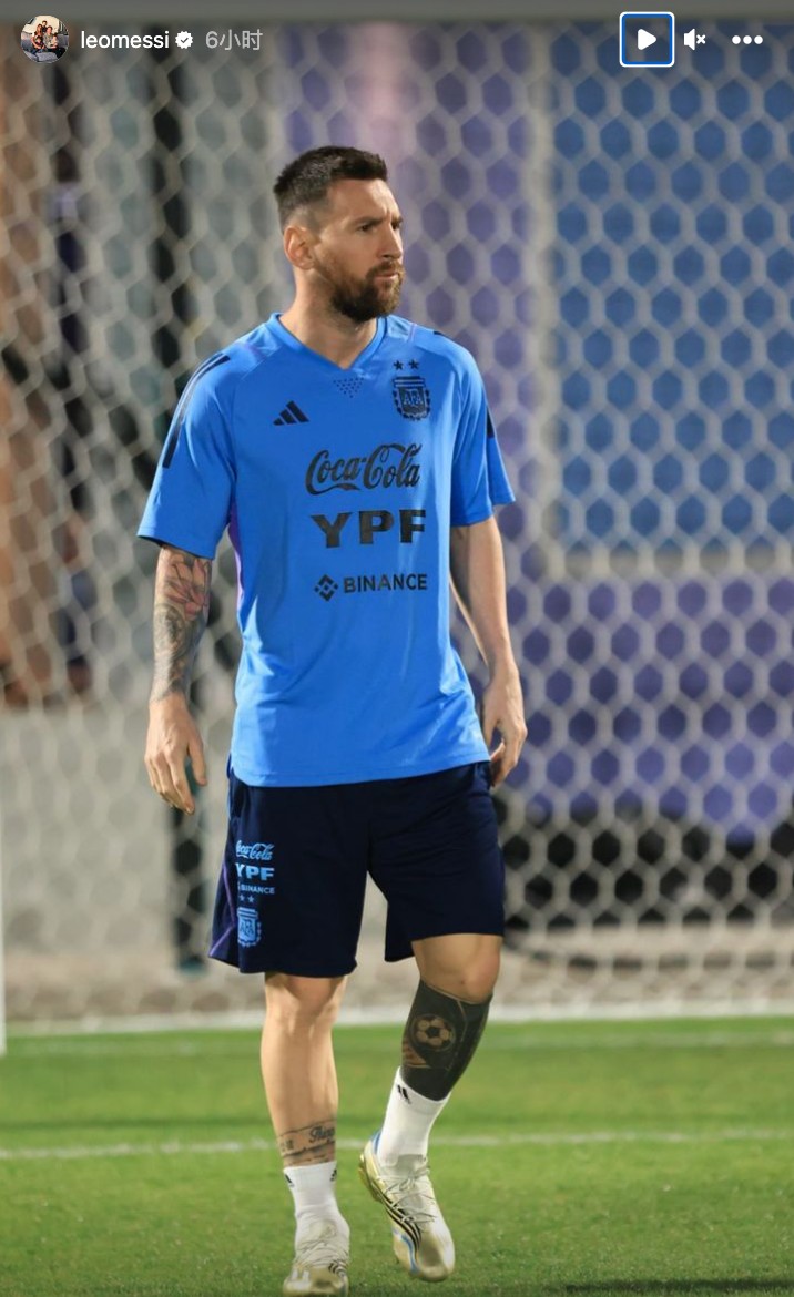 当地时间周五,梅西参加了阿根廷合练,梅西在个人社交媒体晒出训练期间单人照。