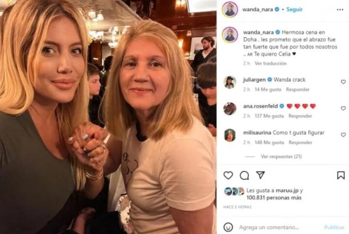 当时旺达在多哈与自己的家人共进晚餐,遇到了梅西的母亲塞莉娅-库奇蒂尼。