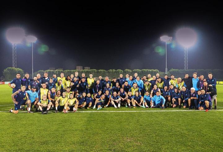 今晚23点,世界杯决赛即将打响!阿根廷国脚迪马利亚在社交媒体晒出全队大合照,为球队加油。