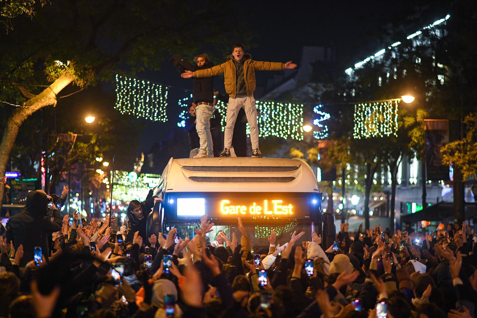 法国队晋级2022卡塔尔世界杯决赛,法国球迷街头疯狂庆祝与警方发生冲突 图据IC photo