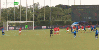 第20分钟,毛梓育头球攻门,门将将球抱住。