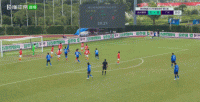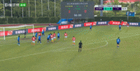 第16分钟,世界波!陈中流任意球直挂死角击中横梁下沿弹入球网,沧州雄狮1-0领先!
