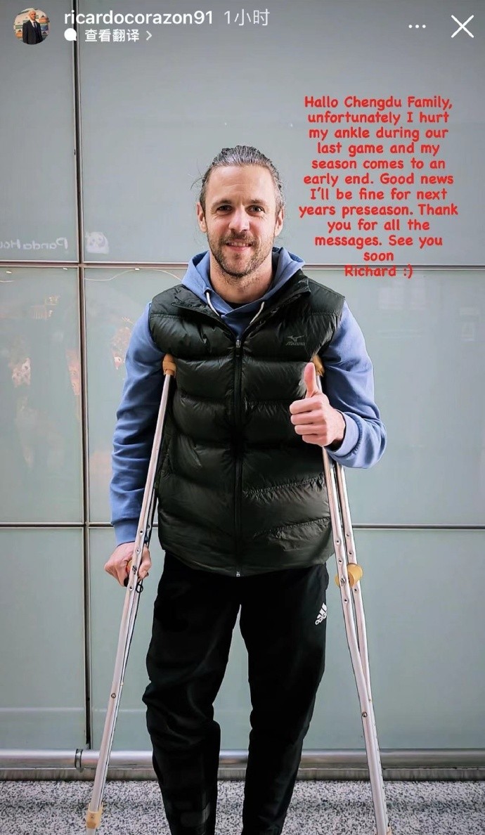 理查德在社交媒体上写道:“我的成都家人们,十分不幸地告诉大家,我在上一场比赛伤到了脚踝,所以要提前结束本赛季了。好消息是,这不会影响我备战下赛季的比赛,感谢你们所有人发来的问候,期待不久后就能再见。”