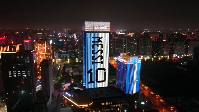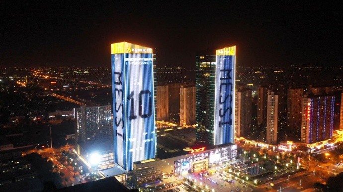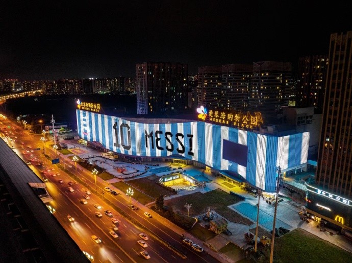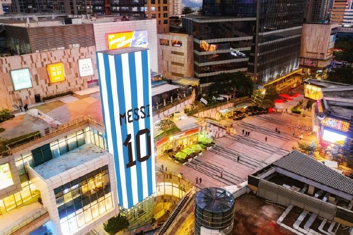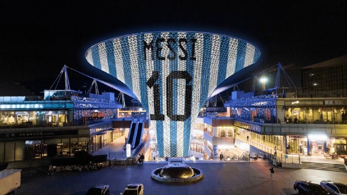 世界杯决赛即将上演,中国各地的阿根廷球迷点亮了建筑为阿根廷和梅西加油。