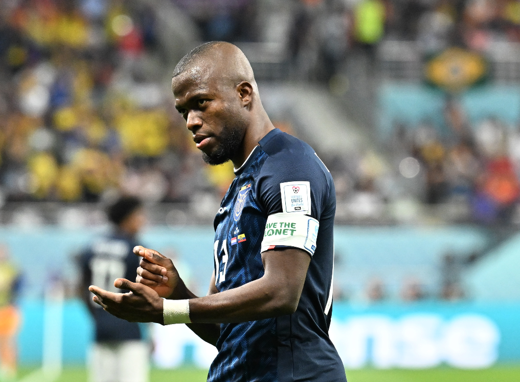 荷兰对阵厄瓜多尔,厄瓜多尔队球员恩纳·瓦伦西亚在比赛中进球后庆祝。