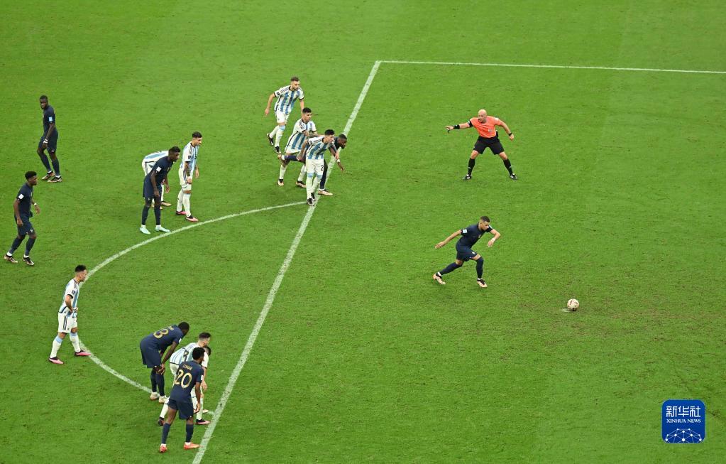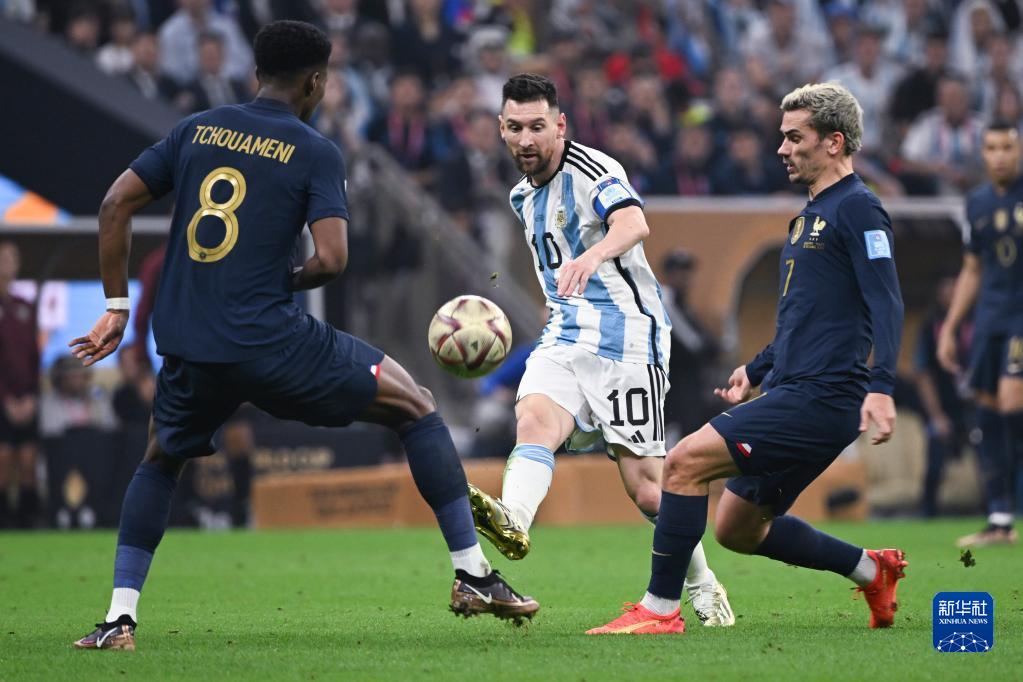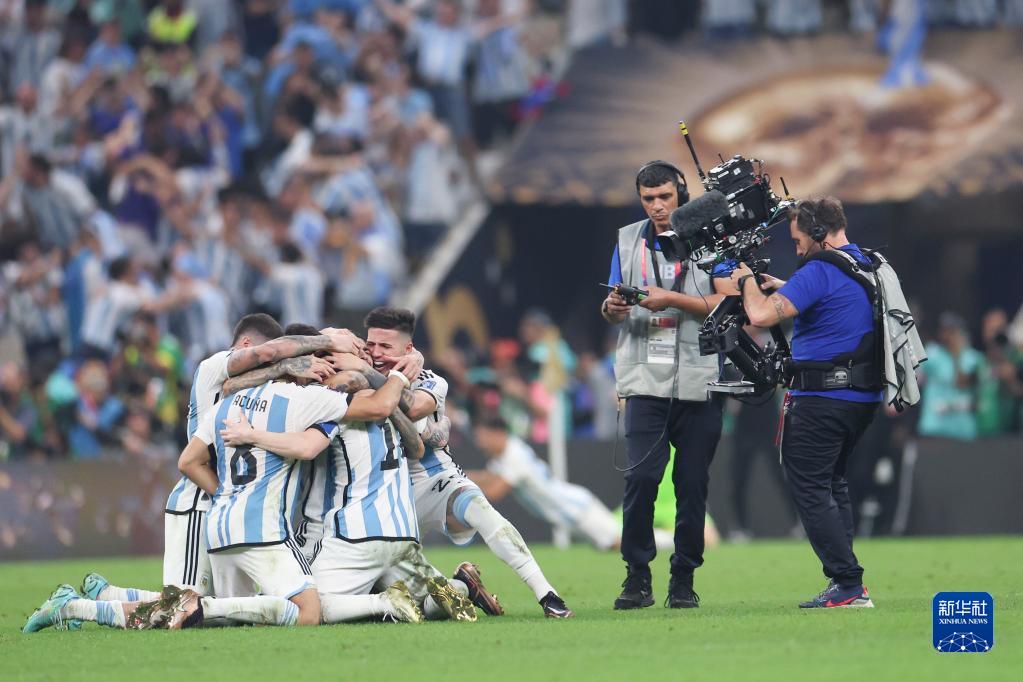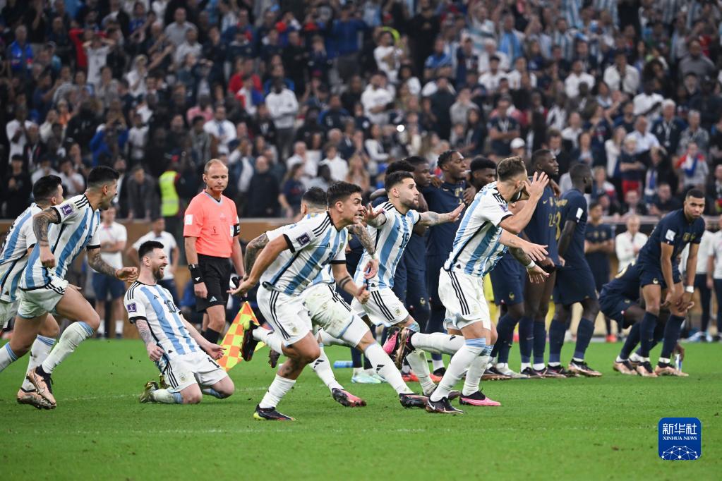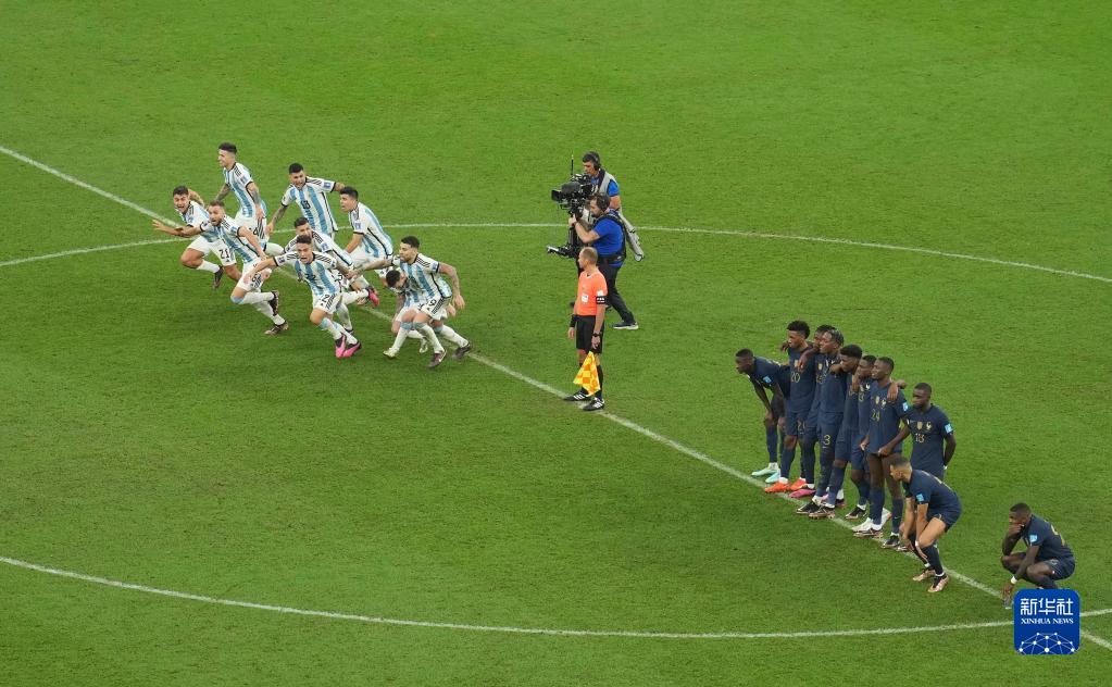 当日,在卡塔尔卢赛尔球场进行的2022卡塔尔世界杯足球赛决赛中,阿根廷队与法国队在常规时间和加时赛战成3比3平,通过点球大战阿根廷队以总比分7比5获胜,夺得冠军。