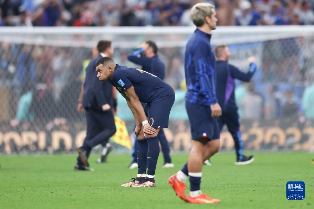 12月18日,法国队球员姆巴佩(前左)在比赛后。新华社记者 李明 摄