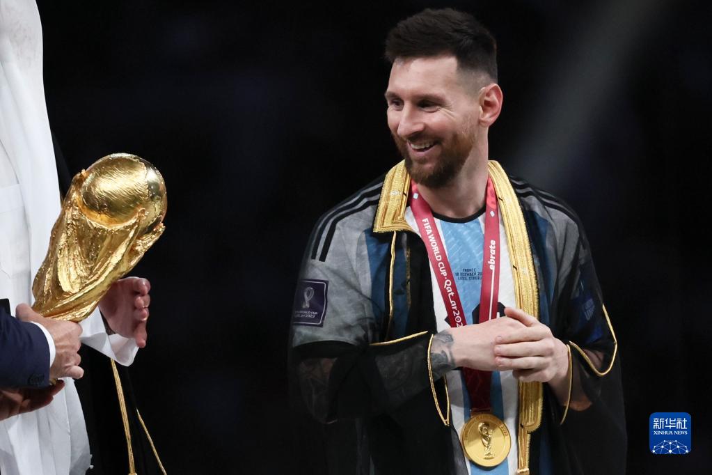 12月18日,阿根廷队球员梅西在颁奖仪式上。新华社记者 兰红光 摄